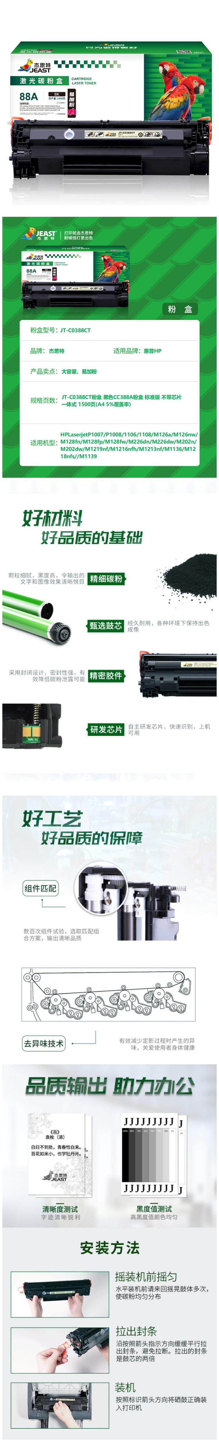 商品标题:杰思特 JT-C0388C 带芯片一体式 打印量1500页 适用机型:HP Laserjet P1007/P1008 硒鼓 (计价单位:只) 黑色