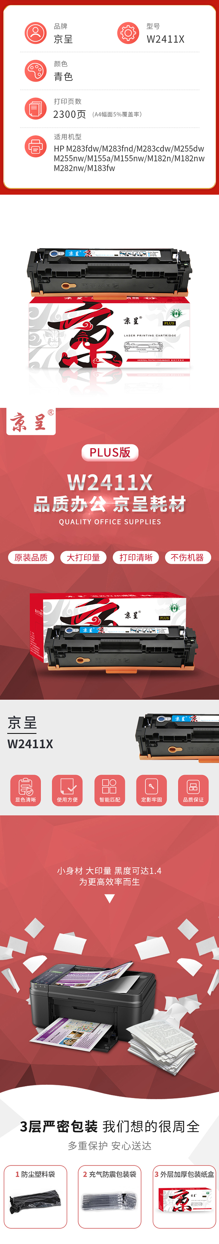 京呈PLUS兼容W2411X硒鼓(鼓粉一体)蓝色单支装(适用CF216A HP M283fdw/M283fnd/M283cdw/M255dw/M255nw/M155a/M155nw/M182n/M182nw/M282nw/M183fw)打印页数:2300页(单位:支)