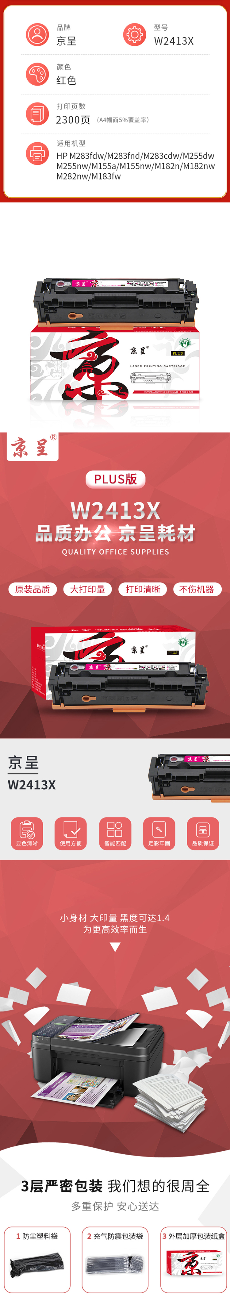 京呈PLUS兼容W2413X硒鼓(鼓粉一体)红色单支装(适用CF216A HP M283fdw/M283fnd/M283cdw/M255dw/M255nw/M155a/M155nw/M182n/M182nw/M282nw/M183fw)打印页数:2100页(单位:支)