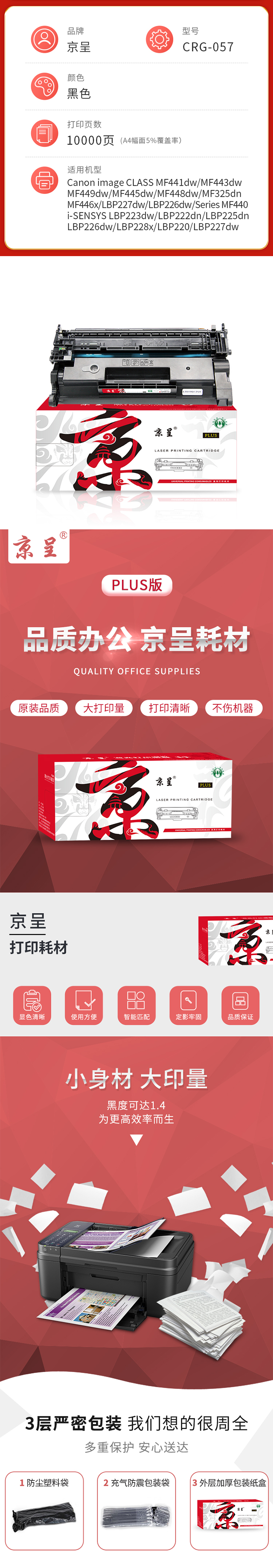 京呈PLUS兼容CRG-057硒鼓(鼓粉一体)黑色单支装(适用佳能Canon image CLASS iC MF441dw iC MF443dw iC MF449dw LBP222dn;LBP223dw LBP225dn LBP228x)打印页数:10000页(单位:支)