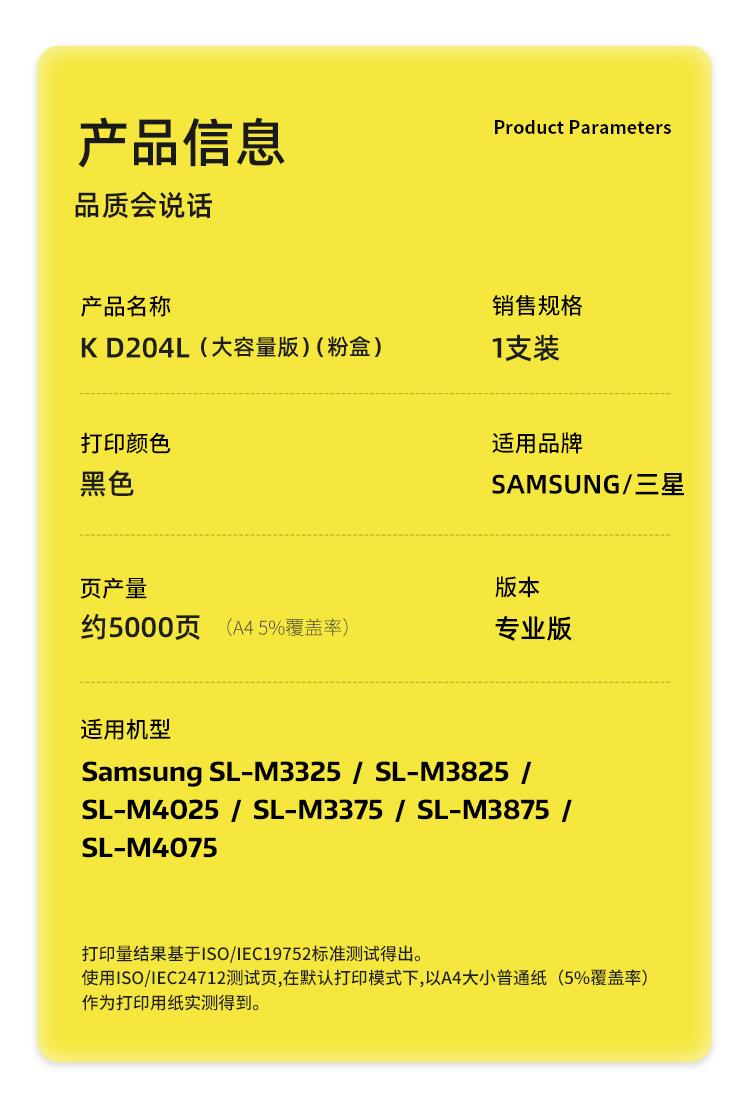 科思特(KST)兼容K D204L粉盒(鼓粉分离)黑色单支装(适用Samsung SL-M3325/SL-M3825/SL-M4025/SL-M3375/SL-M3875/SL-M4075)打印页数:5000页(支)