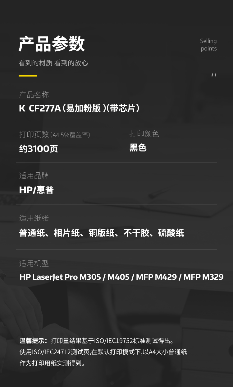 商品标题:科思特(KST)K CF277A(带芯片)易加粉兼容硒鼓 黑色(支)