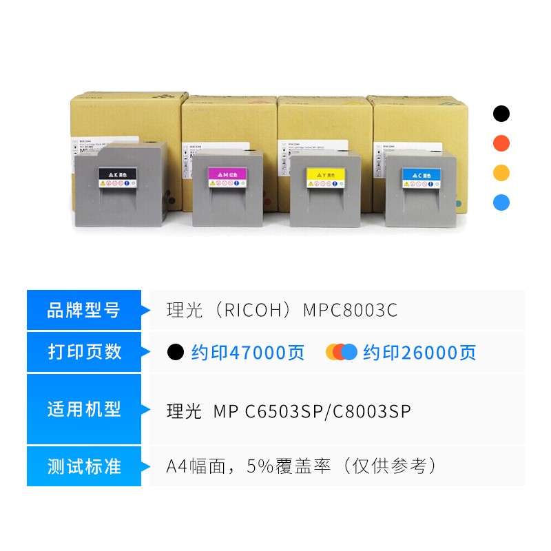 商品标题:理光MPC8003C碳粉盒蓝色适用于MP C6503SP/C8003SP(个)打印页数:26000页