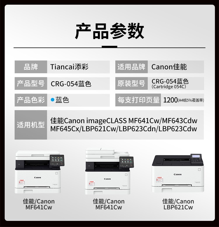 添彩TC-CRG 054C 商用版硒鼓 蓝色 1200页 (支) 适用于Canon MF641Cw;MF643Cdw;MF645Cx;LBP621Cw;LBP623Cdn;LBP623Cdw