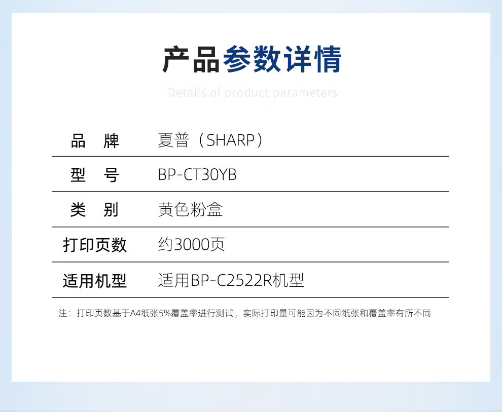 夏普(SHARP) BP-CT30YB原装黄色粉盒(适用BP-C2522R机型)约3000页(单位:支)
