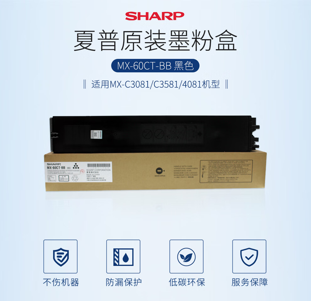 商品标题:夏普(SHARP) MX-60CT-BB 打印量约40000页 适用MX-C3081/C3581/4081机型 墨粉 黑色 (计价单位:支)