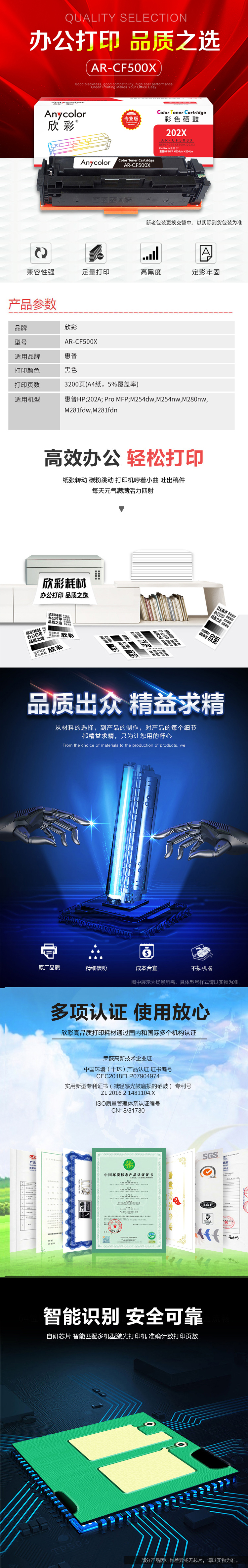 商品标题:欣彩AR-CF500X兼容硒鼓(鼓粉一体)专业版黑色单支装(适用惠普HP MFP M254dn M254dw M254nw M280nw M281fdn)打印页数:3200(单位:支)
