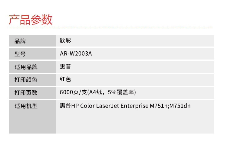 欣彩AR-W2003A兼容粉盒(鼓粉分离)红色单支装(适用惠普HP Color LaserJet Enterprise M751n M751dn)打印页数:6000(单位:支)