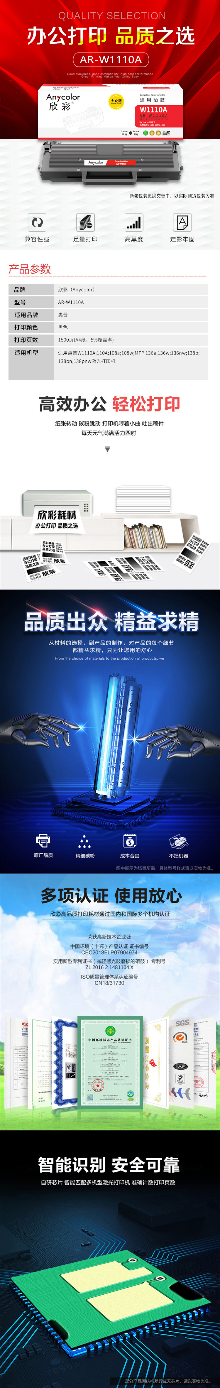 商品标题:欣彩AR-W1110A兼容硒鼓大众版带芯片黑色(单位:支)