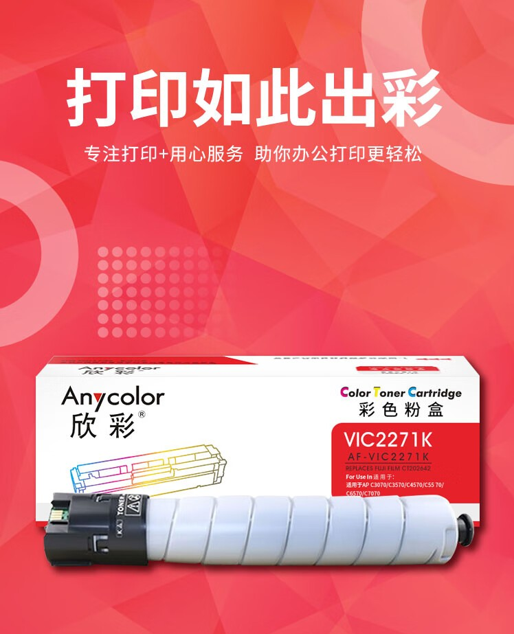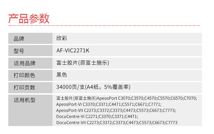 欣彩AF-VIC2271K兼容粉盒(鼓粉分离)黑色单支装(适用富士施乐6代7代 CT202642 VI ⅦC2271 C3370 C3371 C4471 C2273 C3373 C4473)打印页数:34000(单位:支)