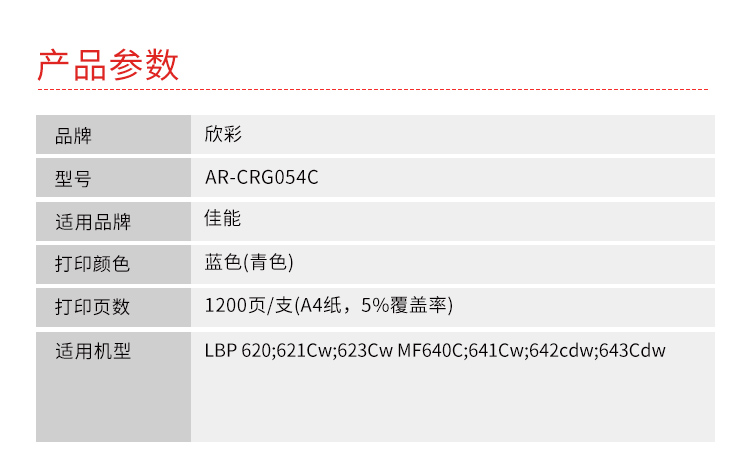 商品标题:欣彩AR-CRG054C兼容硒鼓专业版蓝色(单位:支)