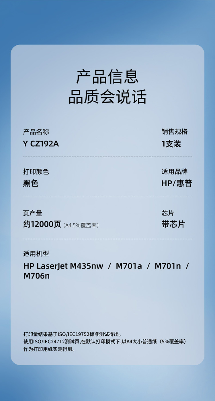 适用机型:HP LaserJet M435nw/M701a/M701n/M706n