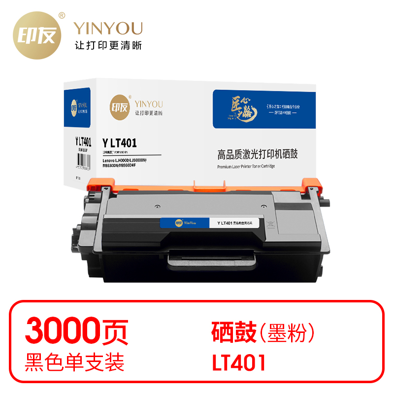 商品标题:印友 兼容Y LT401 粉盒(鼓粉分离)(无芯片)黑色单支装(适用Lenovo LJ4000D/LJ5000DN/M8650DN/M8950DNF )打印量3000页(单位:支)
