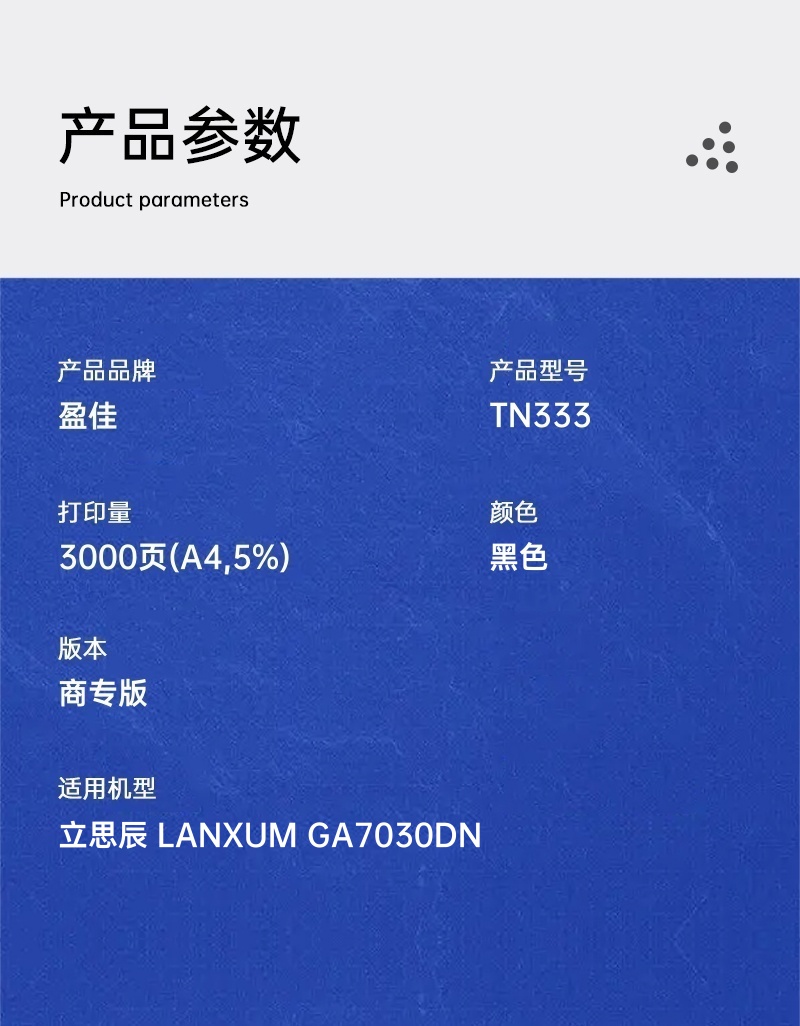盈佳兼容TN333粉盒(鼓粉分离)商专版黑色单支装(适用立思辰 LANXUM GA7030DN)打印页数:3000页(单位:支)