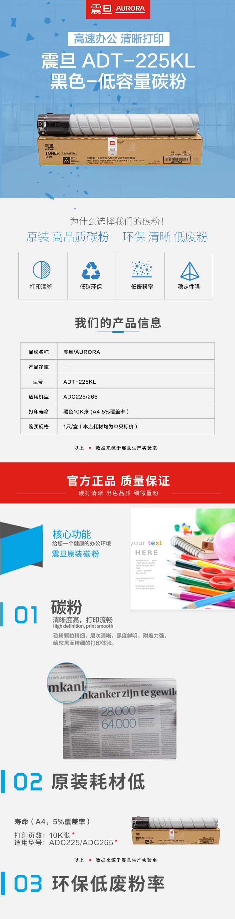 震旦ADT-225KL碳粉低容量黑色适用于ADC225/265(个)