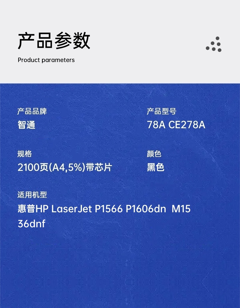 智通兼容78A CE278A硒鼓(鼓粉一体)带芯片黑色单支装(适用于惠普HP LaserJet P1566 P1606dn M1536dnf)打印页数:2100页(单位:支)