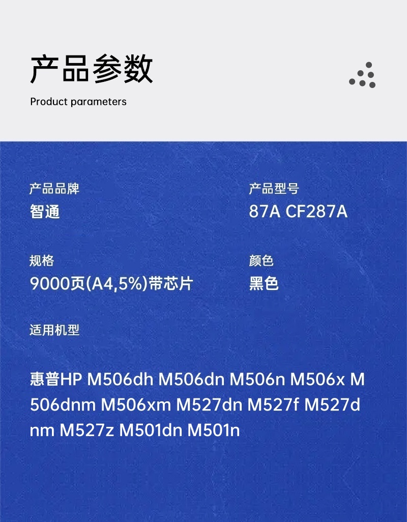 商品标题:智通兼容87A CF287A硒鼓(鼓粉一体)黑色带芯片(支)