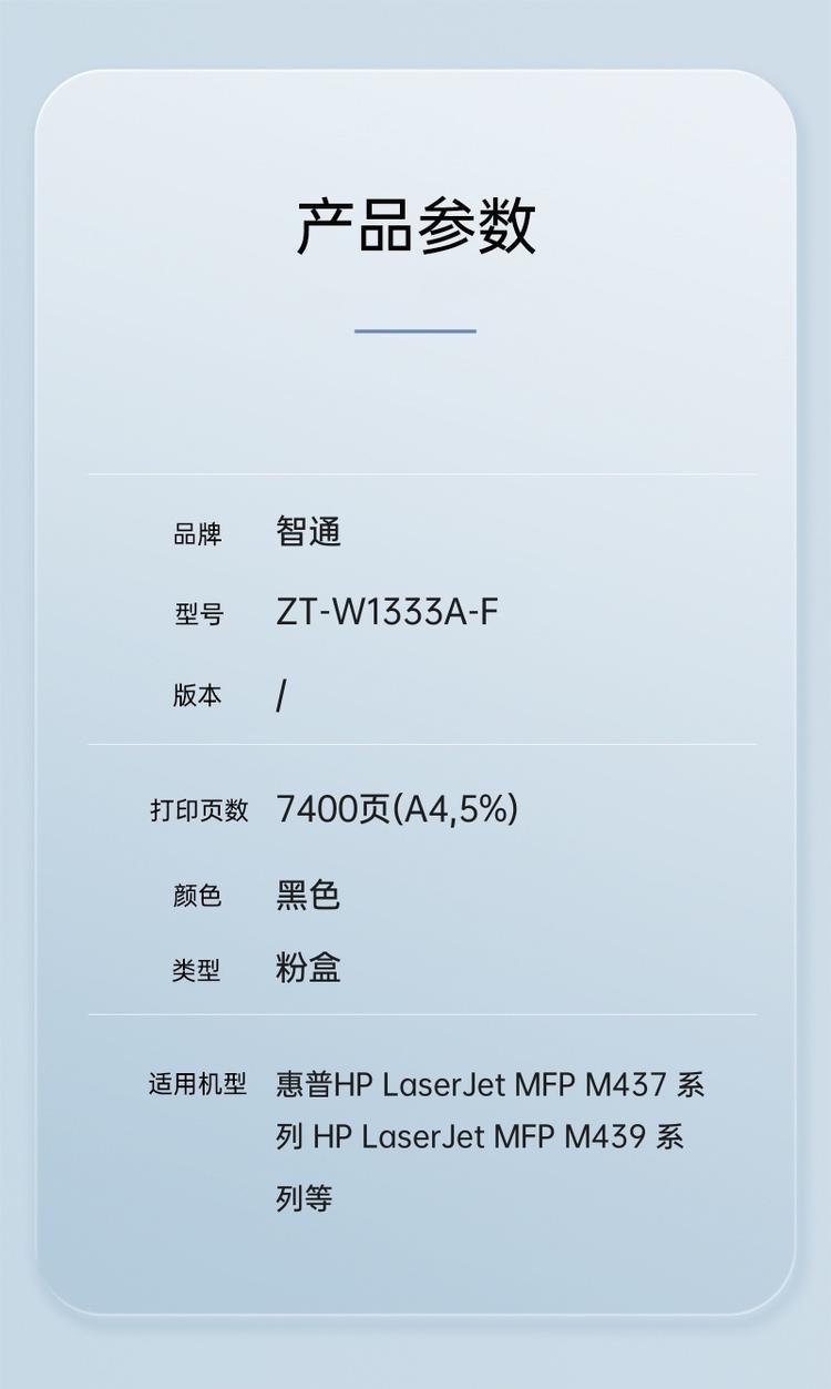 智通ZT W1333A 黑色粉盒 适用于:惠普 m437n\439n\437nda\439nda(支)