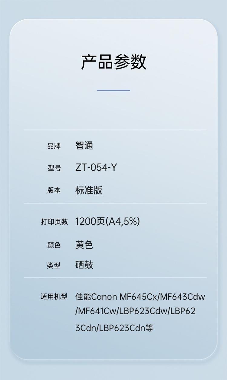 智通ZT CN-CRG054黄色硒鼓 适用于:佳能Canon MF645Cx/MF643Cdw/MF641Cw/LBP623Cdw/LBP623Cdn/LBP623Cdn/LBP621Cw(支)