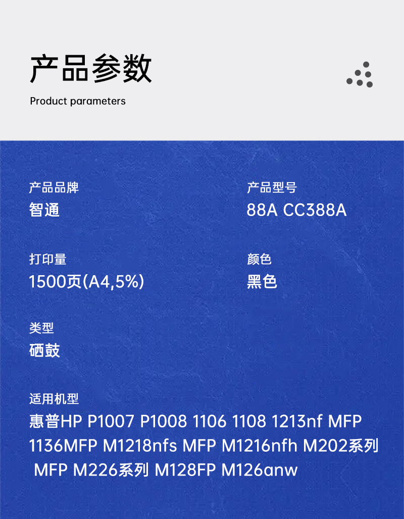 智通兼容88A CC388A硒鼓(鼓粉一体)带芯片黑色单支装(适用于惠普HP P1007 P1008 1106 1108 1213nf)打印页数:1500页(单位:支)
