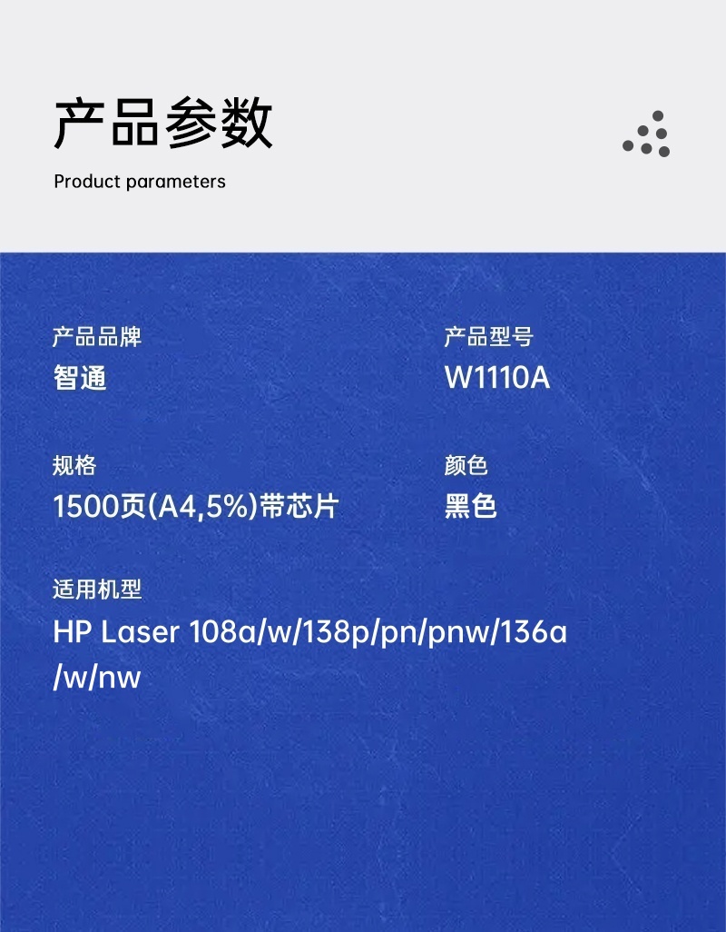 商品标题:智通兼容W1110A硒鼓(鼓粉一体)带芯片黑色单支装(适用于HP Laser 108a/w/138p/pn/pnw/136a/w/nw)打印页数:1500页(单位:支)