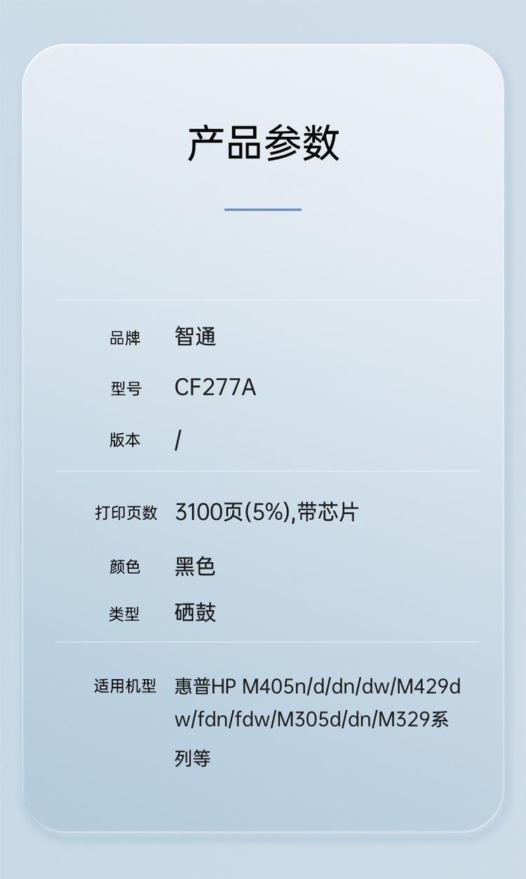 智通 CF277A 黑色硒鼓(支) (适用于:惠普HP M405n/d/dn/dw/M429dw/fdn/fdw/M305d/dn/M329系列)