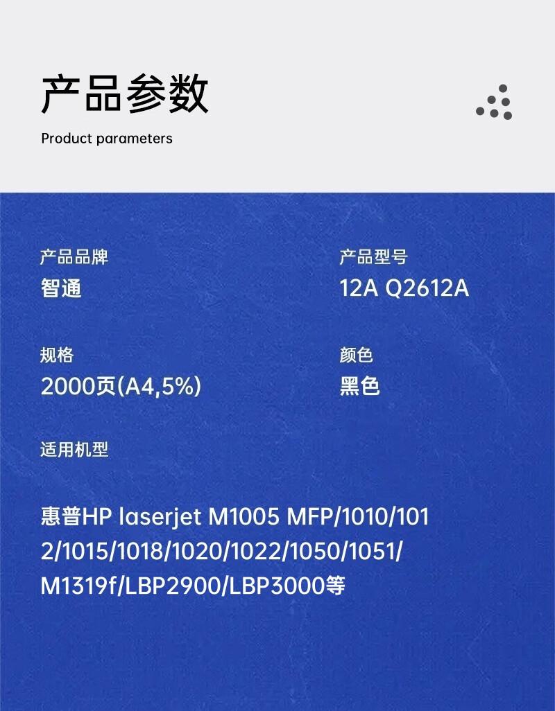 商品标题:智通Z073硒鼓12A Q2612A2000页 不带芯片个黑色(个)