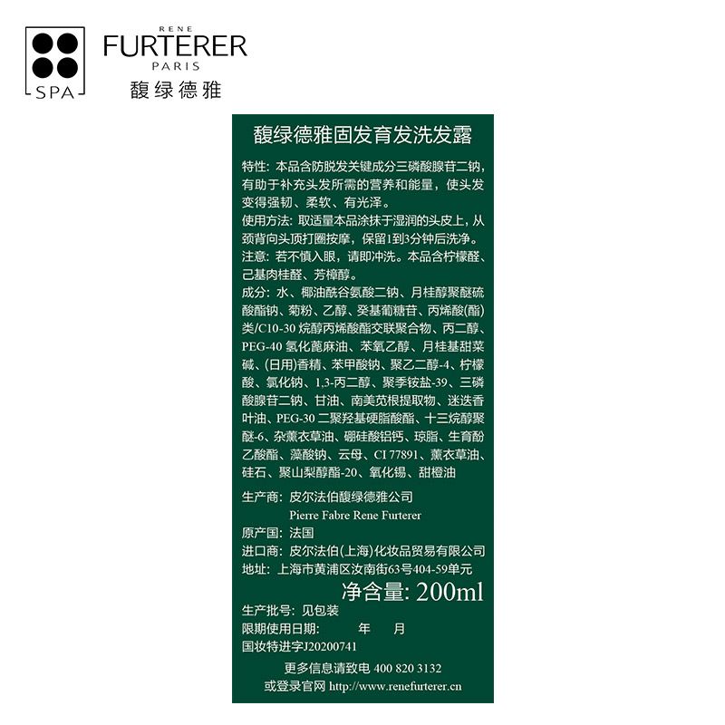 商品标题:馥绿德雅固发育发洗发露200ML(计价单位:瓶)