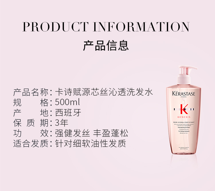 商品标题:卡诗(KERASTASE)赋源芯丝沁透洗发水 500ml(单位:瓶)
