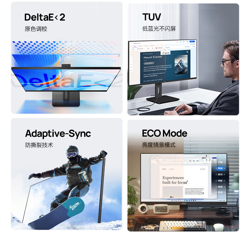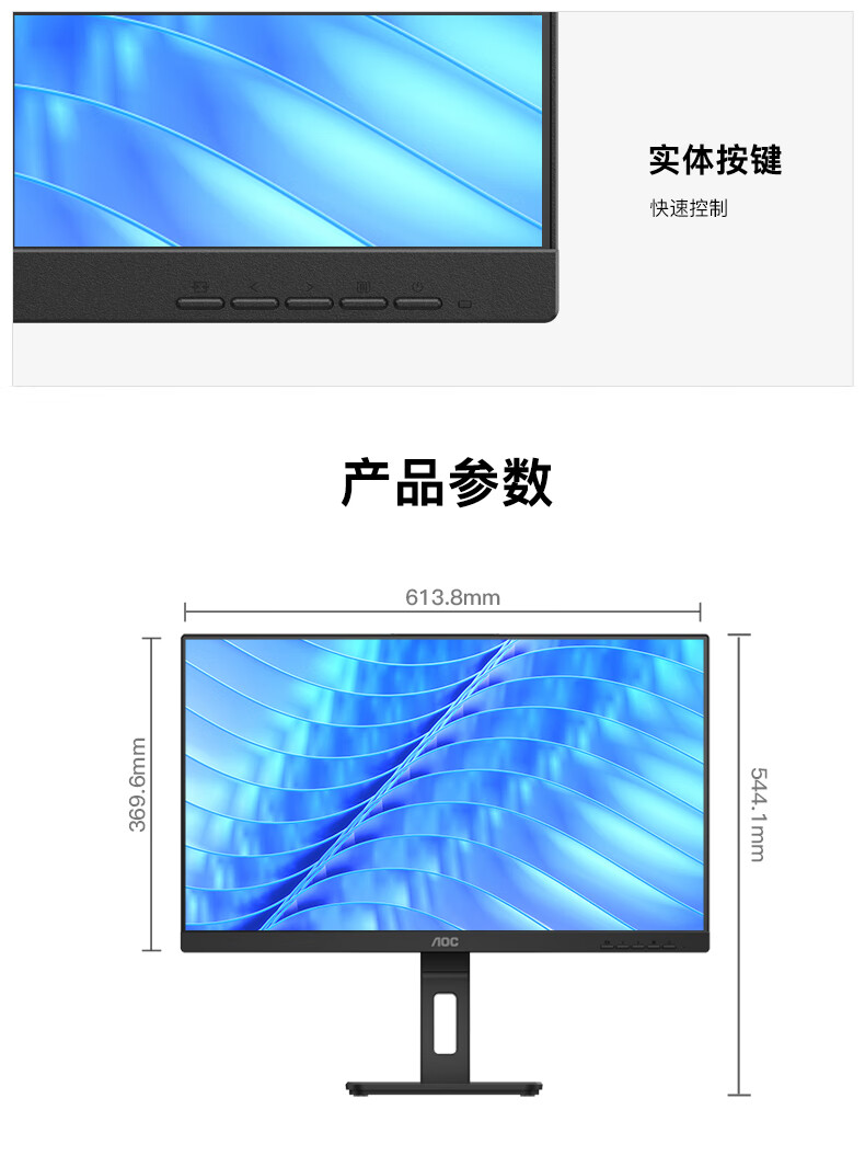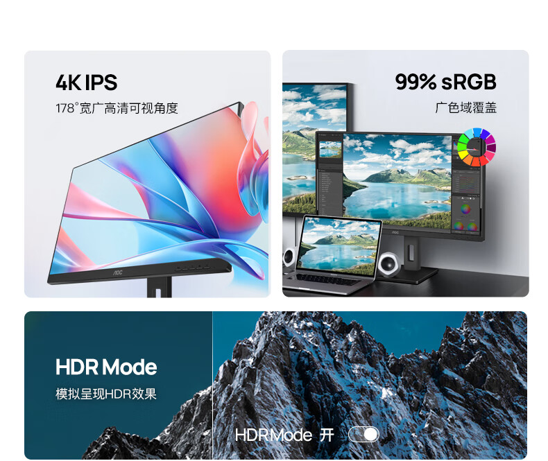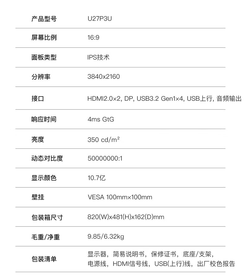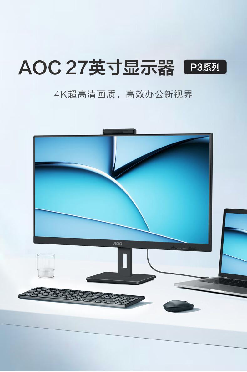 商品标题:AOC U27P3U电脑显示器 27英寸 IPS 4K超清99% sRGB窄边框 升降旋转支架家用设计办公TUV低蓝光爱眼显示屏(单位:台)