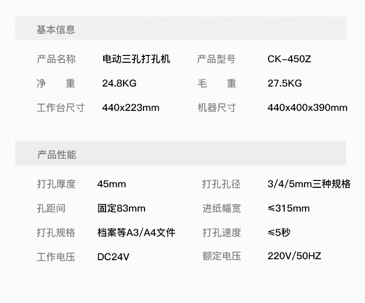 商品标题:科密(comet)CK-450Z电动三孔打孔机 (单位:台)