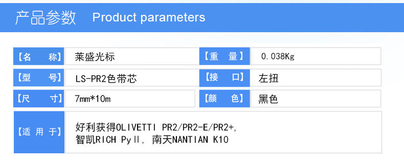 莱盛光标 兼容LSGB-PR2II 色带(色带架含芯)黑色单支装(适用于OLIVETTI PR2/PR2II/PR-2E/PR3400/PR8400,南天 K10,智凯RICH PyⅡ)色带芯:7mm*10m (单位:条)