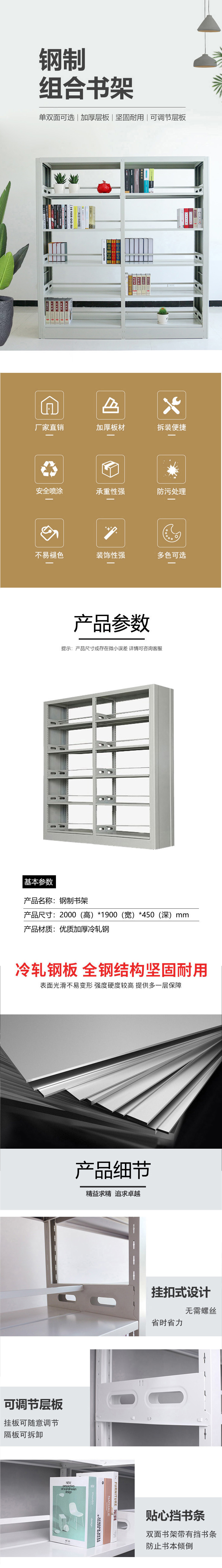 商品标题:铭祖MZ-TSJ-06书柜书架灰白5层双1列2组2000*1900*450mm