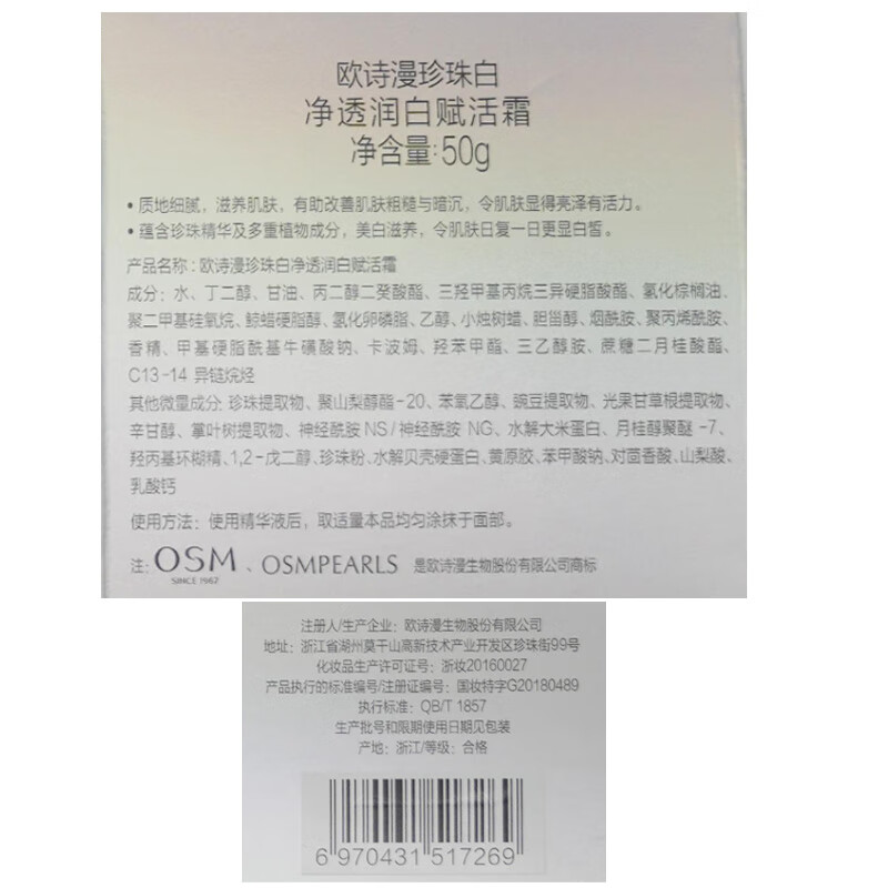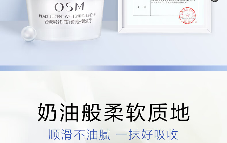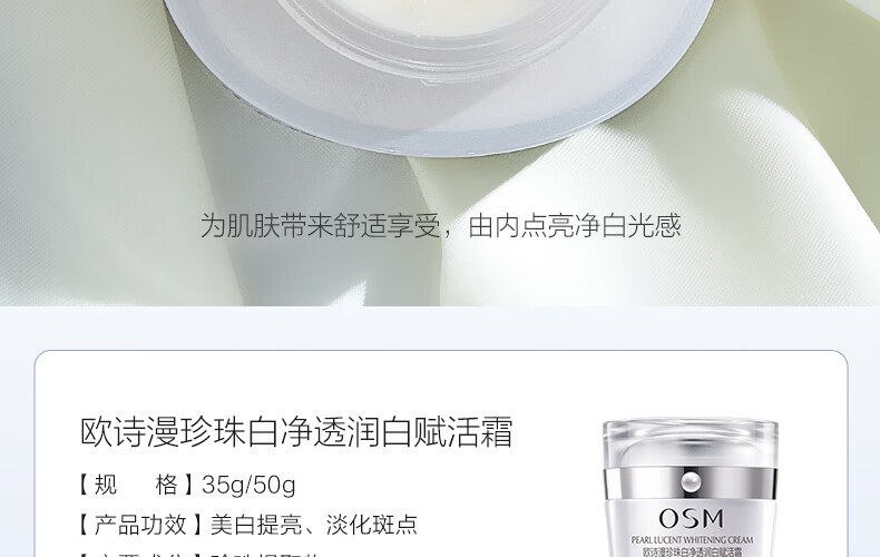 欧诗漫(OSM)珍珠白面霜女赋活霜擦脸美白提亮肤色润肤保湿50g(单位:瓶)