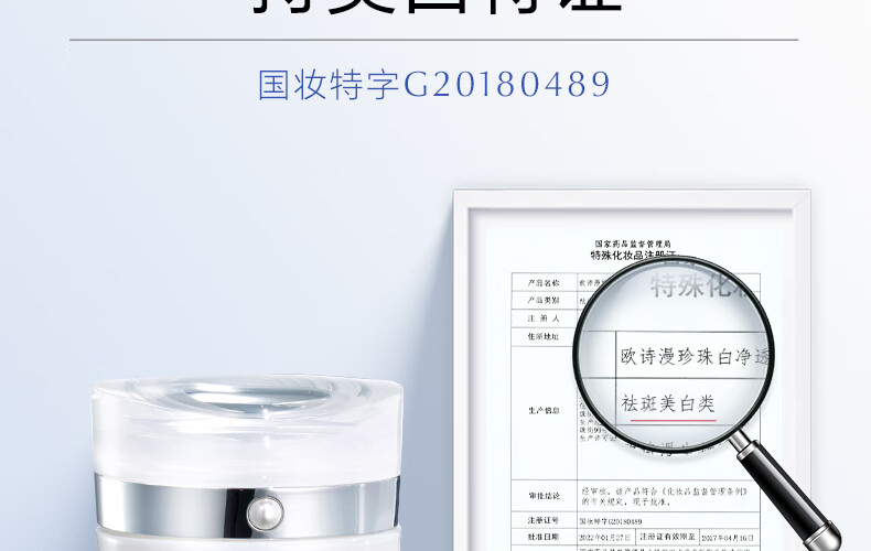 产品(注册/备案)名称:珍珠白净透润白赋活霜