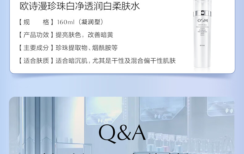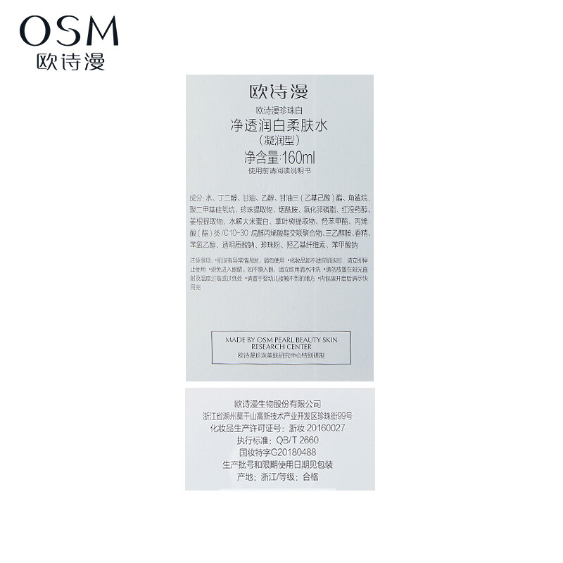 欧诗漫新升级珍珠白护肤品美白补水保湿爽肤水160ml(单位:瓶)