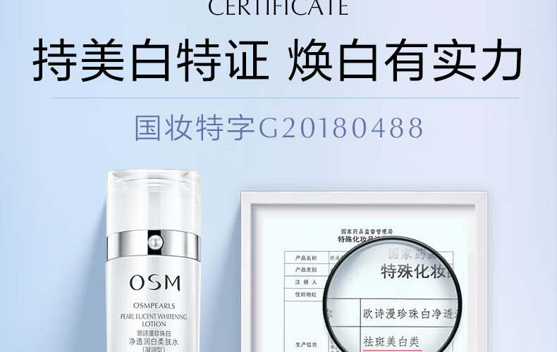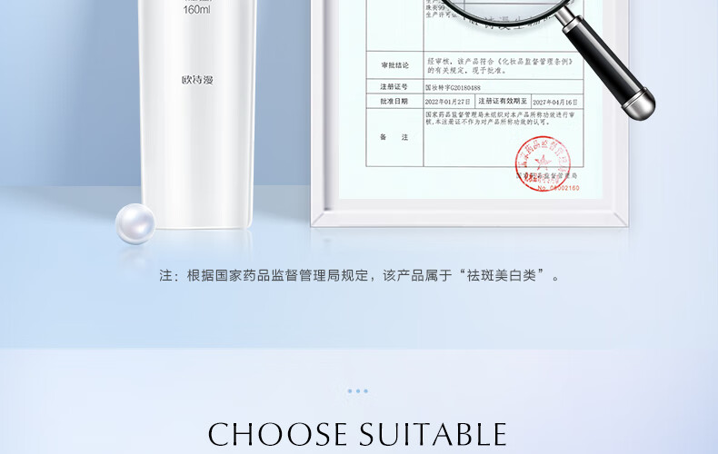 产品(注册/备案)名称:珍珠白净透润白柔肤水