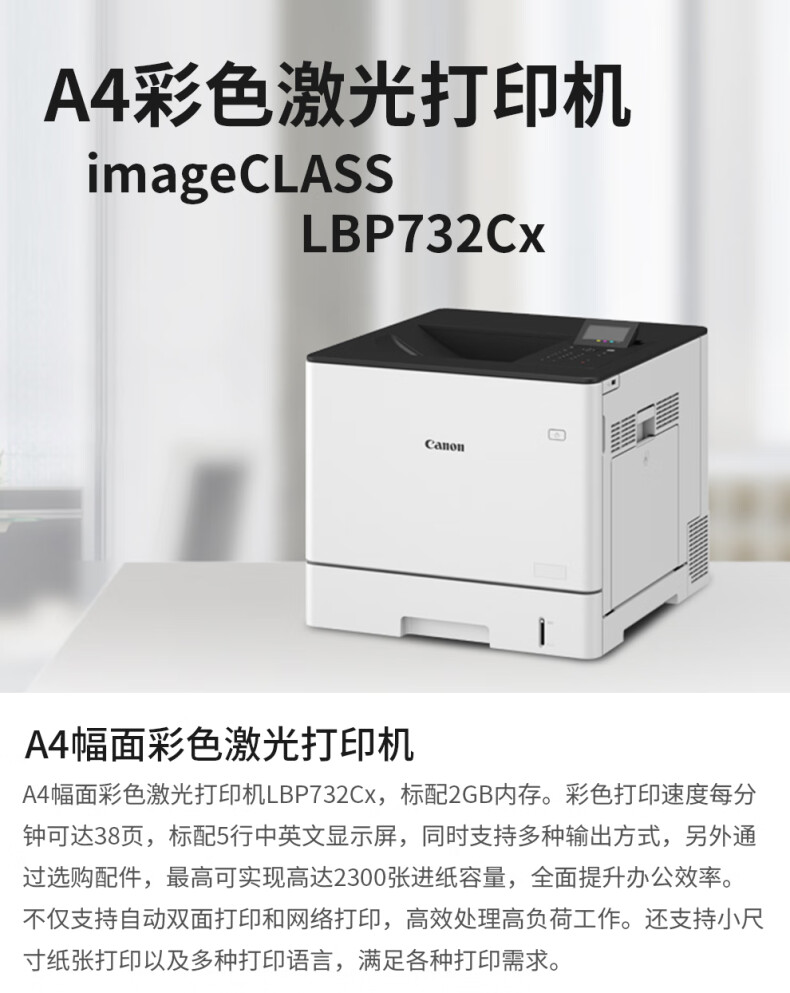 商品标题:佳能(Canon)LBP732CX彩色A4激光打印机原厂标配(单位:台)【含安装】