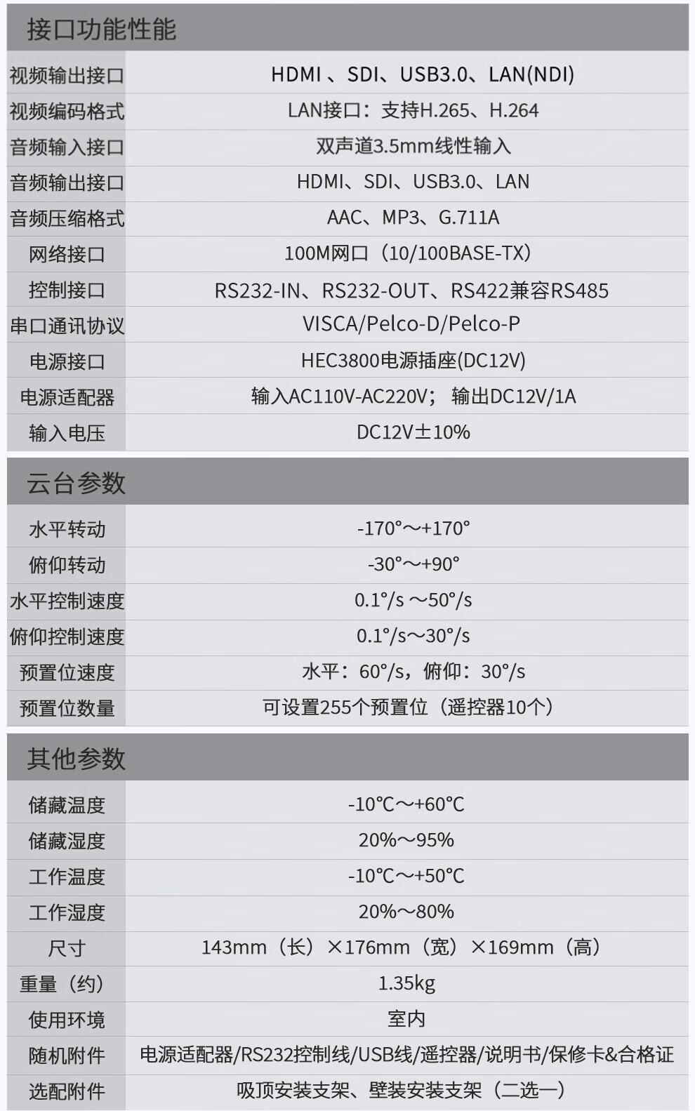 商品标题:宏视道 HSD-HD5512K 智能AI跟踪广角4K超高清12倍变焦视频会议摄像头(台)