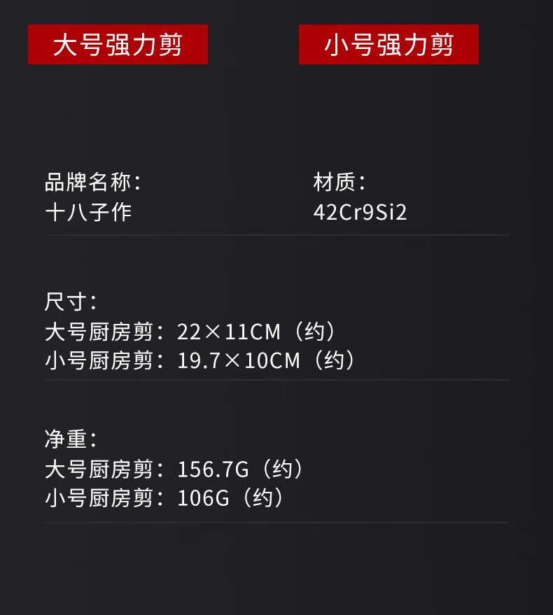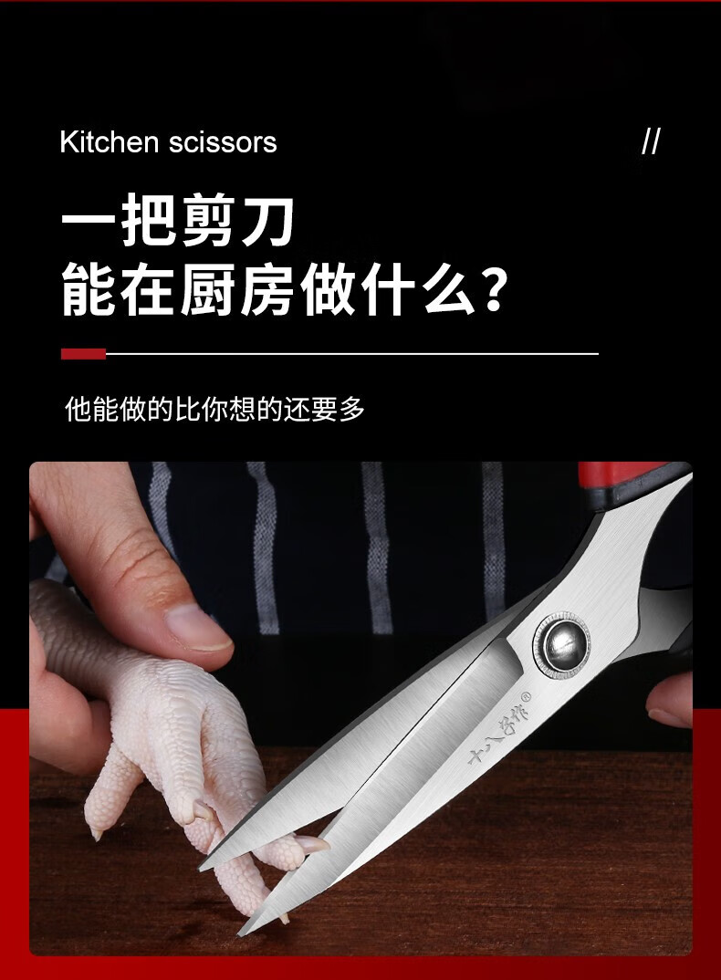 商品标题:十八子作SB3032厨房剪家用剪子剪肉食物剪鸡骨剪辅食烧烤剪刀小号(单位:把)
