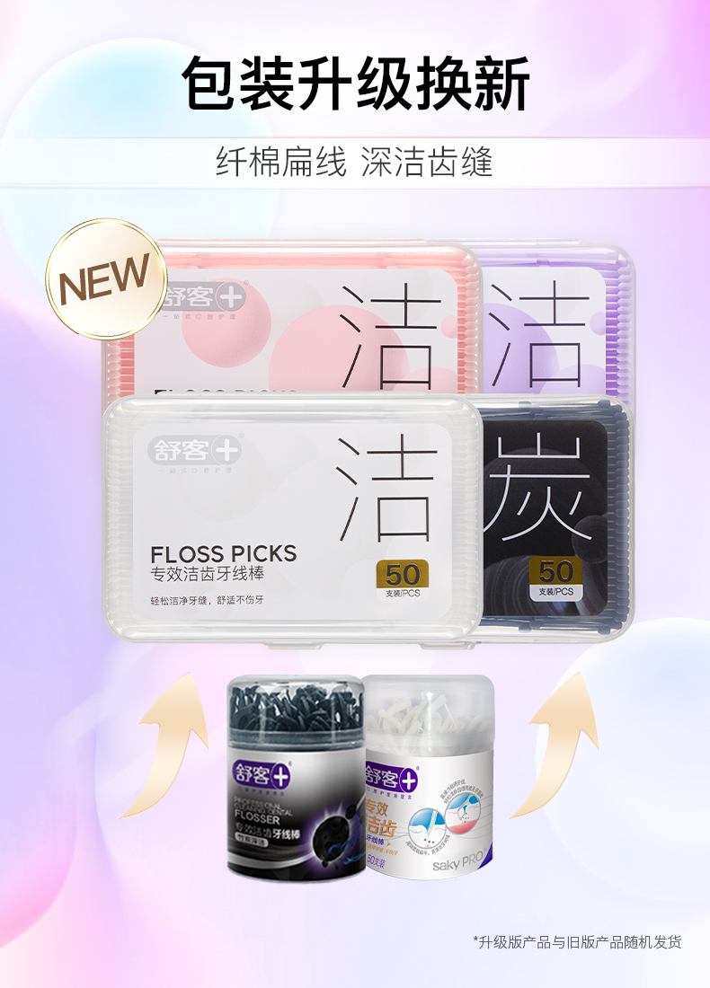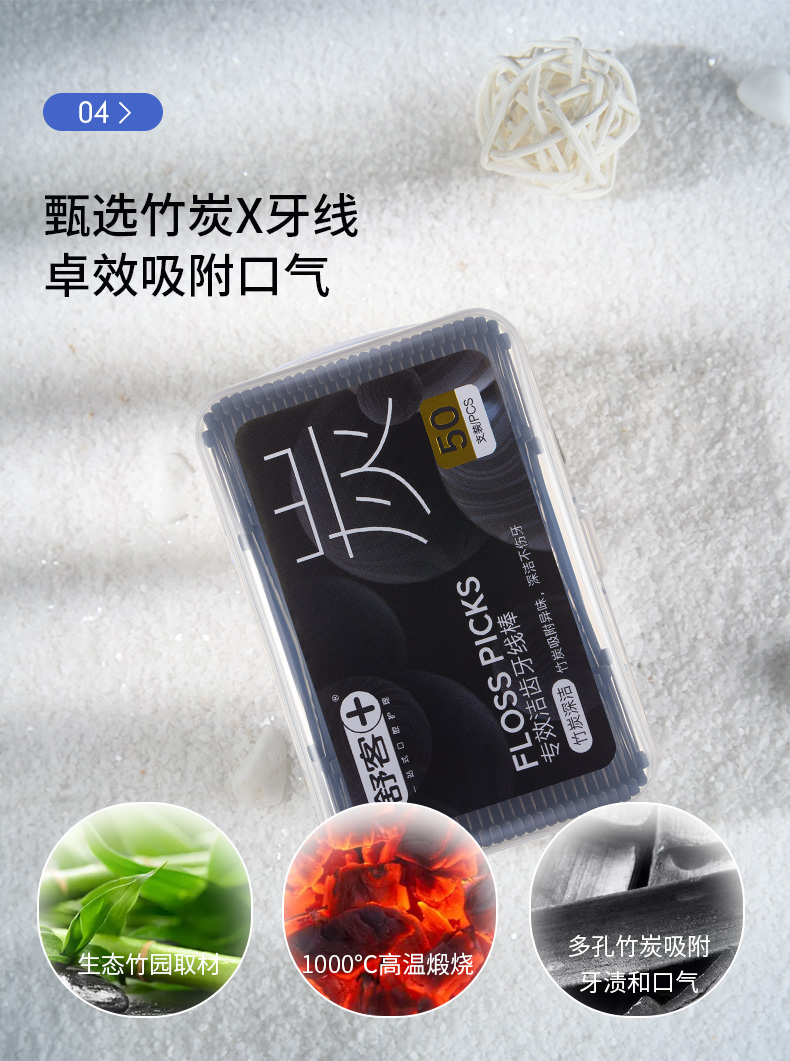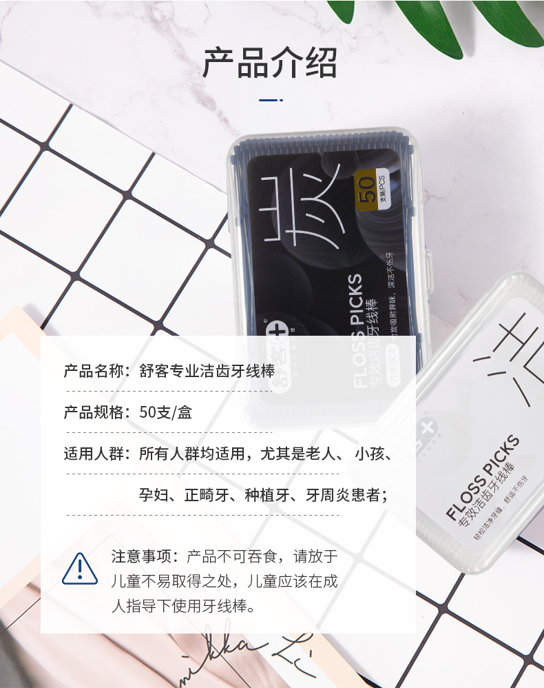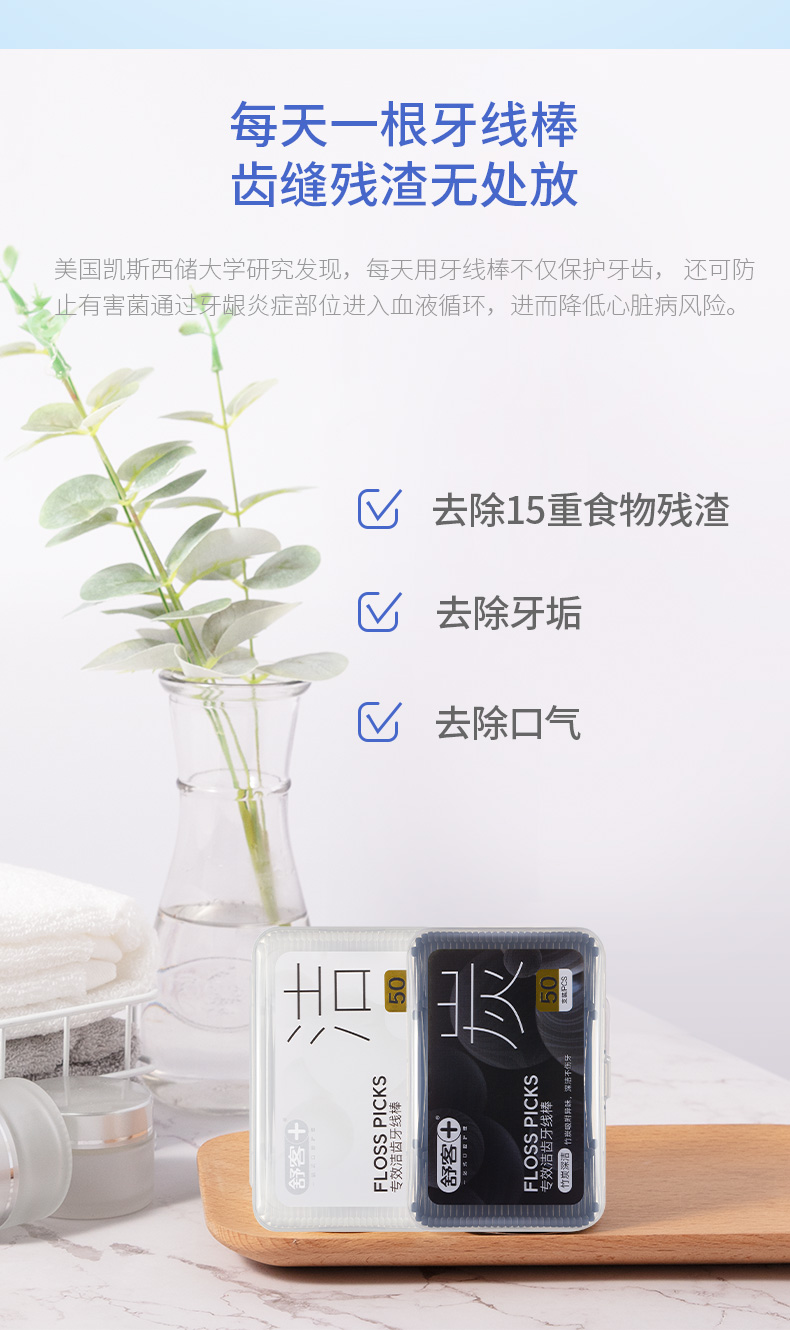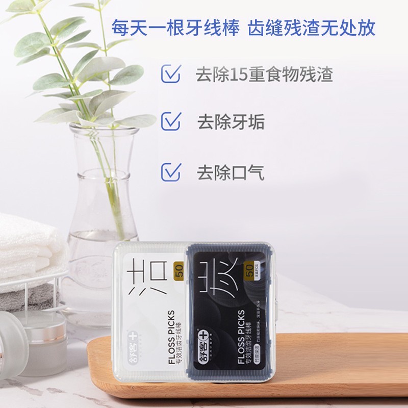 商品标题:舒客 专业口腔护理专业洁齿牙线棒 50支装 混色 (单位 盒)