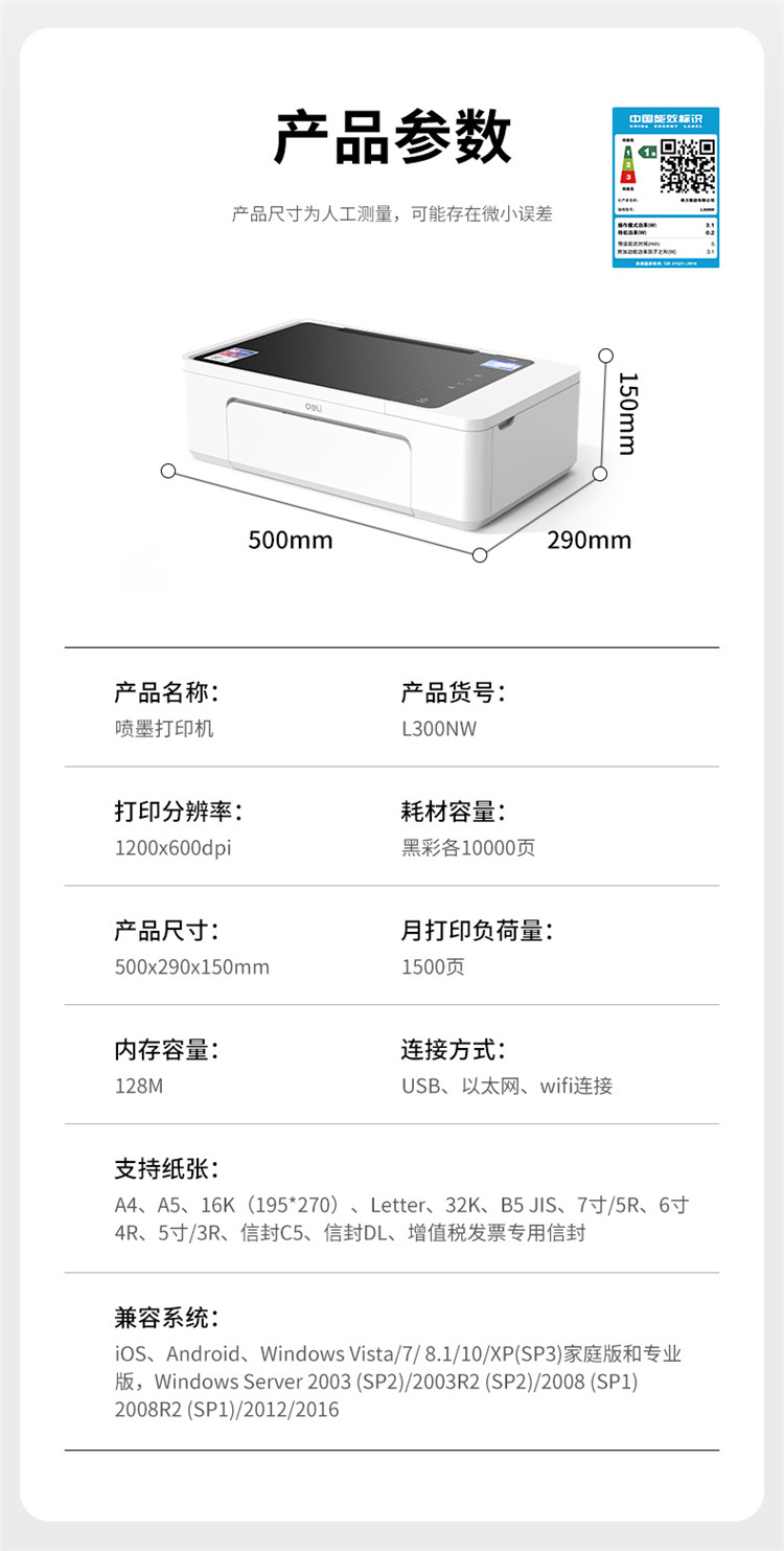 商品标题:得力L300W彩色喷墨多功能一体机(白色)(台)