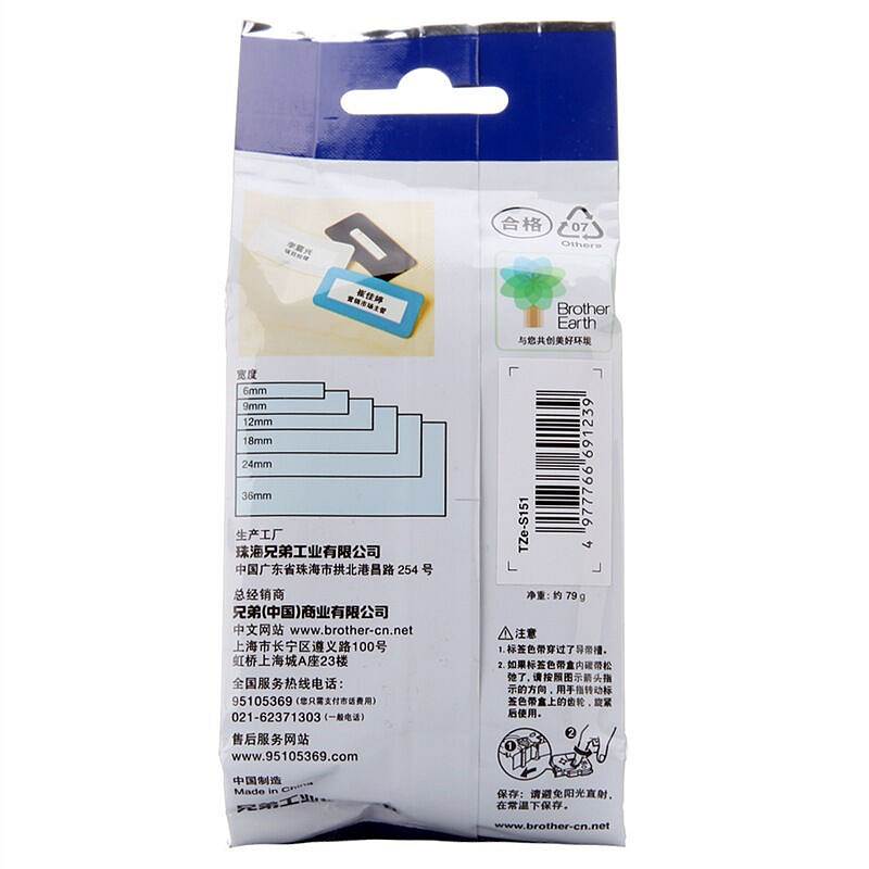 商品标题:兄弟TZe-S151标签机色带透明底黑字(单位:卷)(适用9500/9700/9800/3600/2430/2730/7600)
