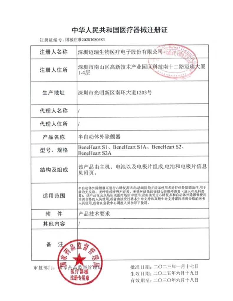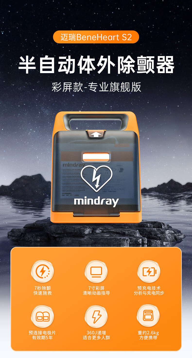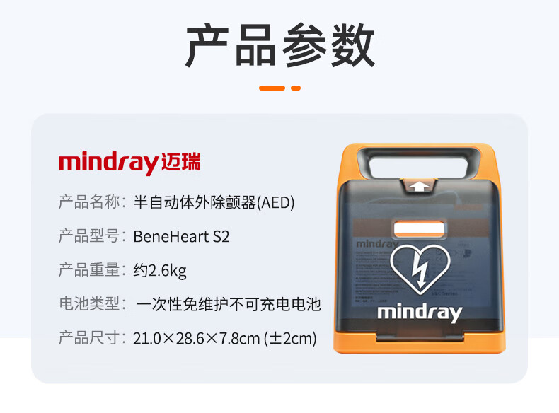商品标题:迈瑞半自动体外除颤器AED除颤仪 BeneHeart S2彩屏款 含安装和一次线下培训(台)