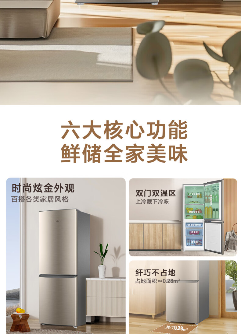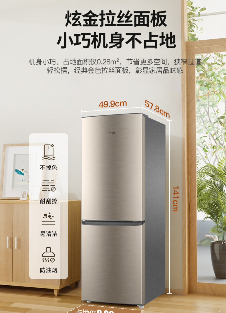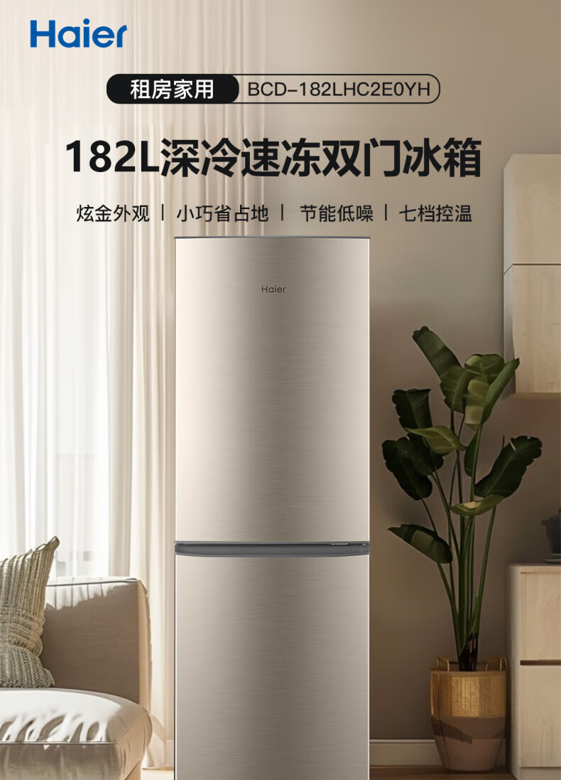 海尔(Haier)BCD-182LHC2E0YH 182升 双开门家用两门冷藏冷冻 冰箱(单位:台)