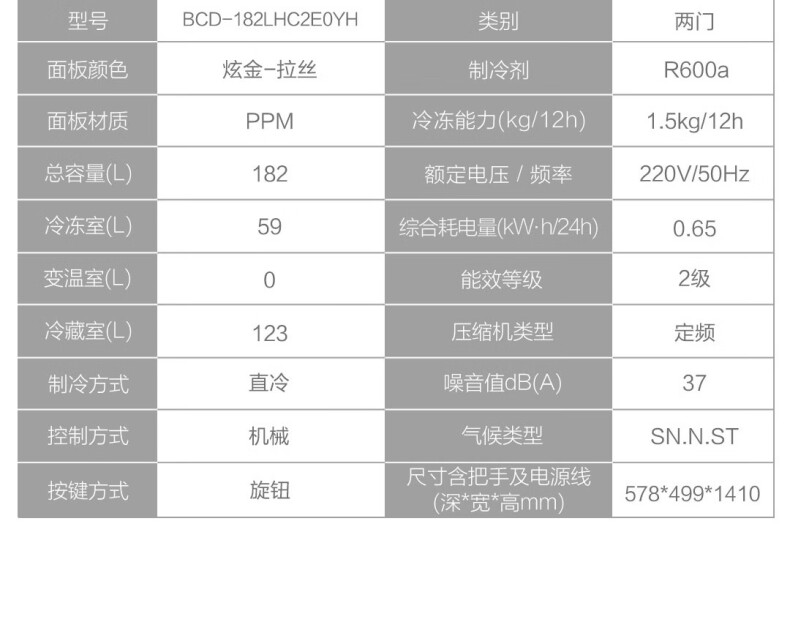 型号:BCD-182LHC2E0YH