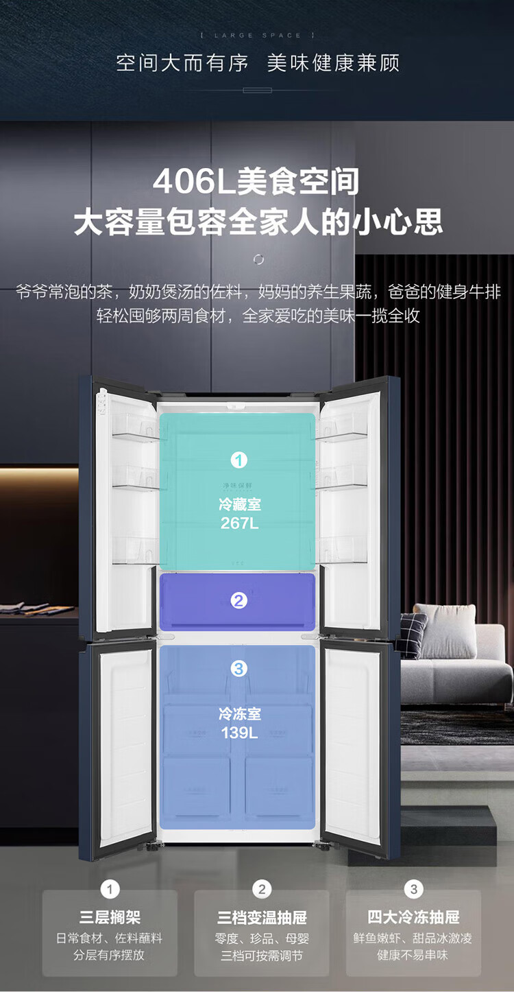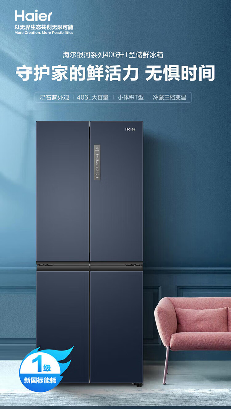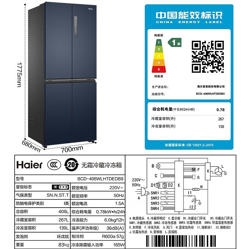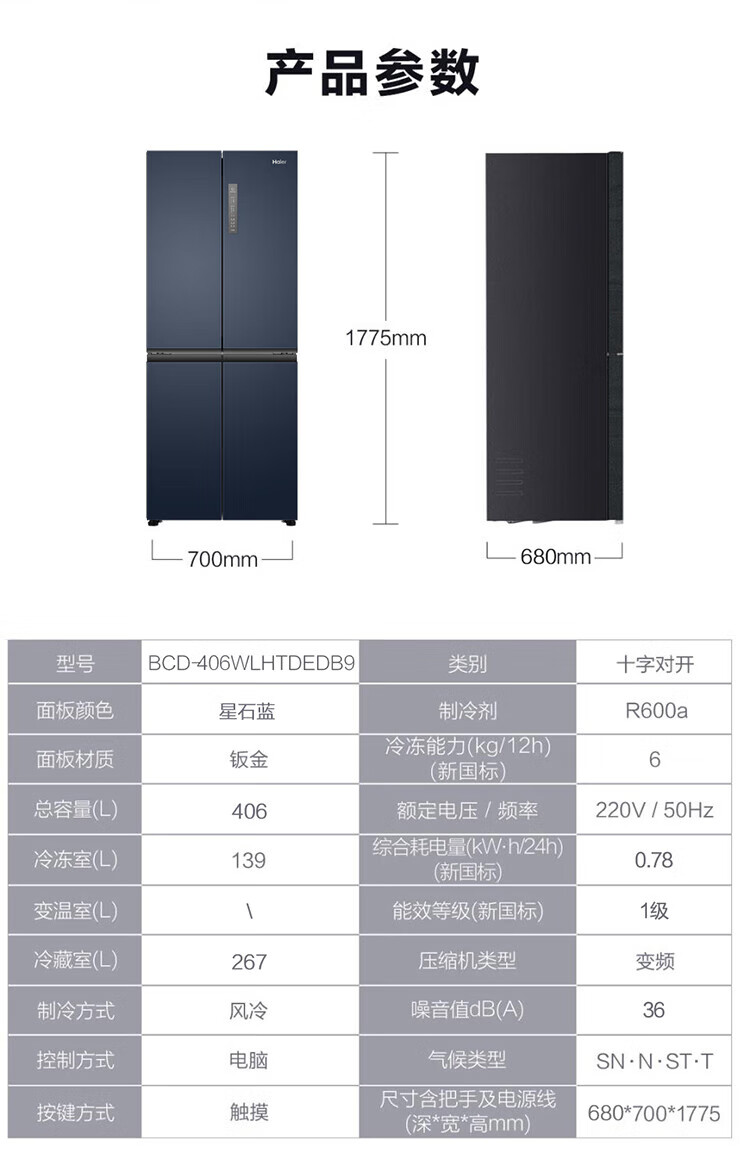 商品标题:海尔(Haier)BCD-406WLHTDEDB9十字对开门冰箱(台)