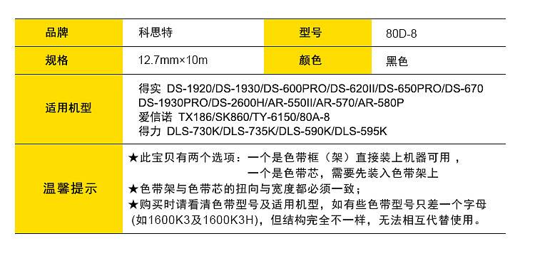 商品标题:科思特DSACOM80D-8色带架黑色(条)