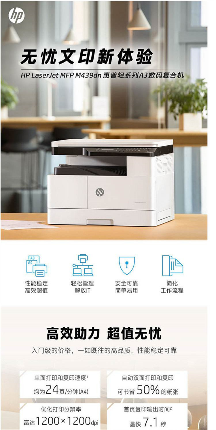 商品标题:惠普(HP) M439dn 黑白中速复合机A3(复印/打印/扫描)(台)
