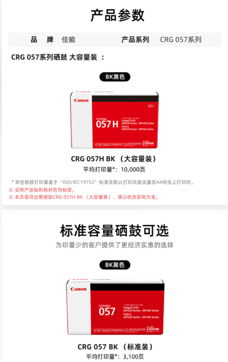 商品标题:佳能CRG 057H BK 原装硒鼓 打印页数:10000页(支)